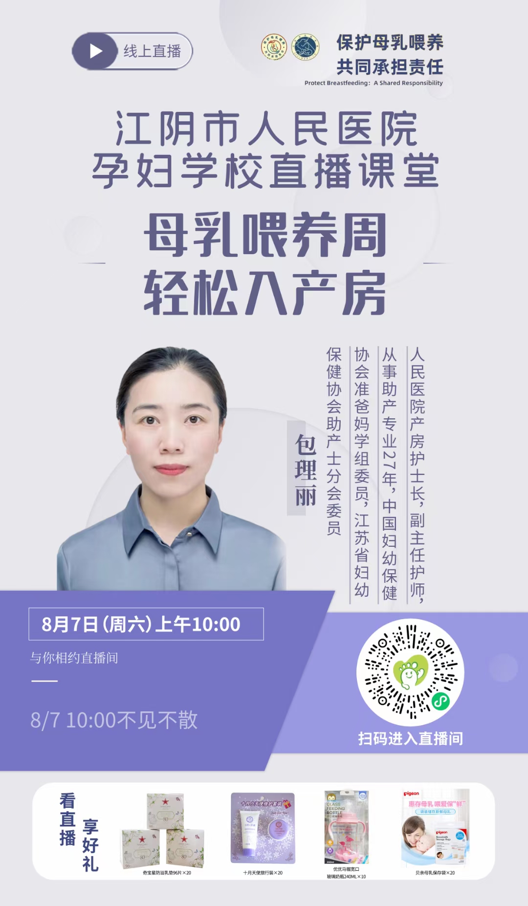 奶瓶、儲奶袋、溢乳墊,各種產(chǎn)后所需好物直播間免費送,快掃碼關(guān)注預約